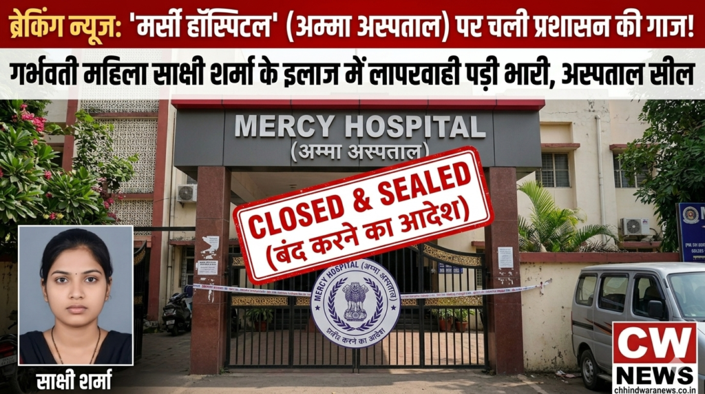 Chhindwara Amma Hospital Case: लापरवाही पर प्रशासन का बड़ा प्रहार, खजरी रोड स्थित अम्मा अस्पताल को बंद करने का अंतिम आदेश, जानें पूरी सच्चाई   |   Chhindwara Pustak Mela: MLB School में 4 अप्रैल से लगेगा भव्य पुस्तक मेला, अभिभावकों को मिलेगी बड़ी राहत, जानें क्यों है यह मेला खास   |   Simariya Bus Accident Chhindwara: सिमरिया मंदिर के पास भीषण भिड़ंत, 10 की मौत, CM ने किया 4-4 लाख की सहायता का ऐलान   |   Vishal Gada Yatra Chhindwara: छिंदवाड़ा में 25वीं विशाल गदा एवं पद यात्रा का शंखनाद, जवानों की दीर्घायु के लिए उमड़ेगी भक्तों की भारी भीड़   |   Parasia Cough Syrup Case: परासिया कफ सिरप कांड में SIT की बड़ी कार्रवाई, 2 और डॉक्टर गिरफ्तार, अब तक 24 मासूमों की मौत   |